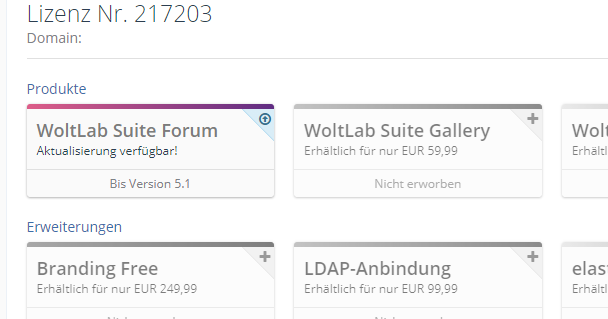 Moin, ich biete meine Woltlab Suite Forum Lizenz an! (Bis Version 5.1)Ich würde die Lizenz dann auf einen anderen Benutzer übertragen! (Übertragungskosten übernehme ich)Zahlungsmöglichkeit:PayPalPreis:80€ VB 80 Euro