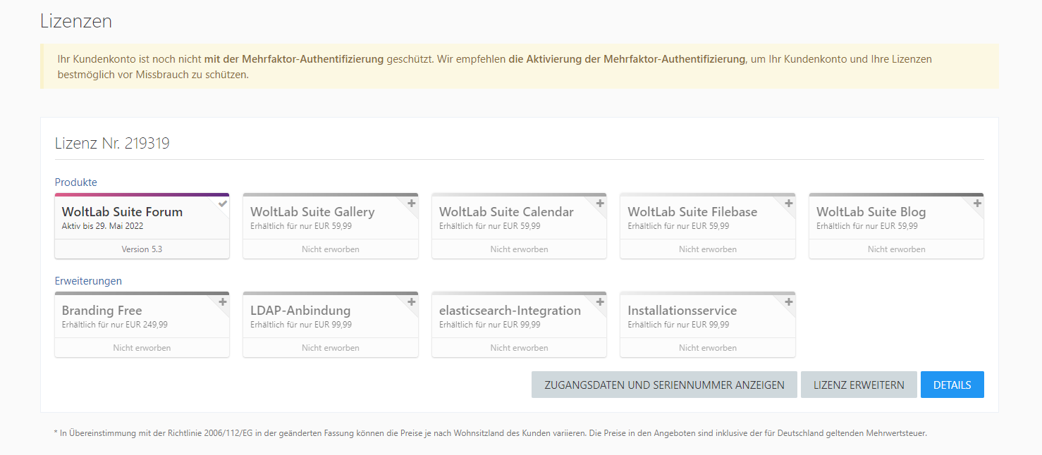 ich verkaufe hier eine neu erworbene WoltLab Suite Forum 5.3 Lizenz, da ich Sie nicht benötige. Hatte den Drang dazu die Lizenz