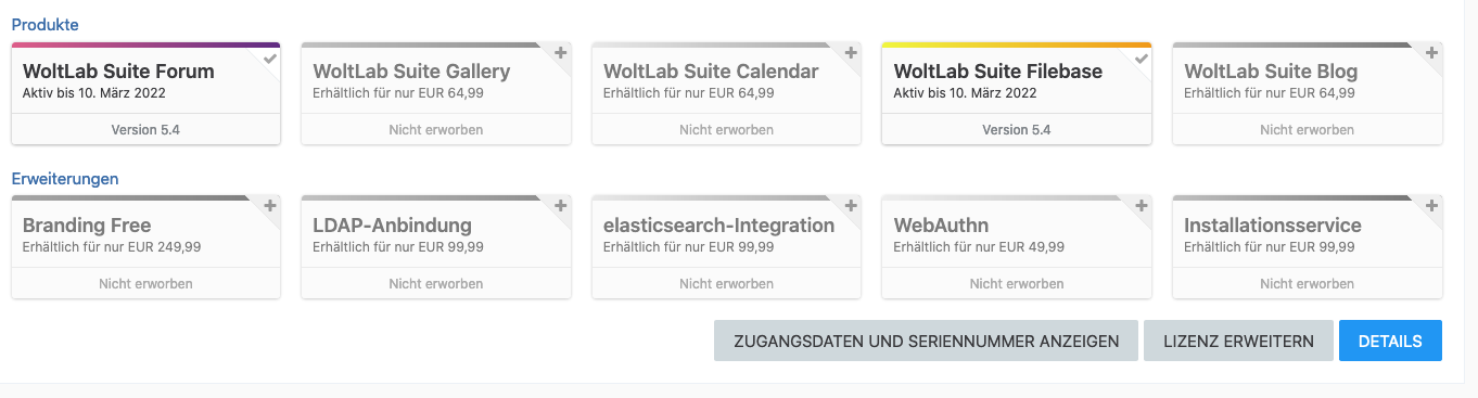 (inkl. WL Forum (5.4) und WL Filebase (5.4) bei Lizenzen noch mit Update aktiv bis zum 10. März 2022!)