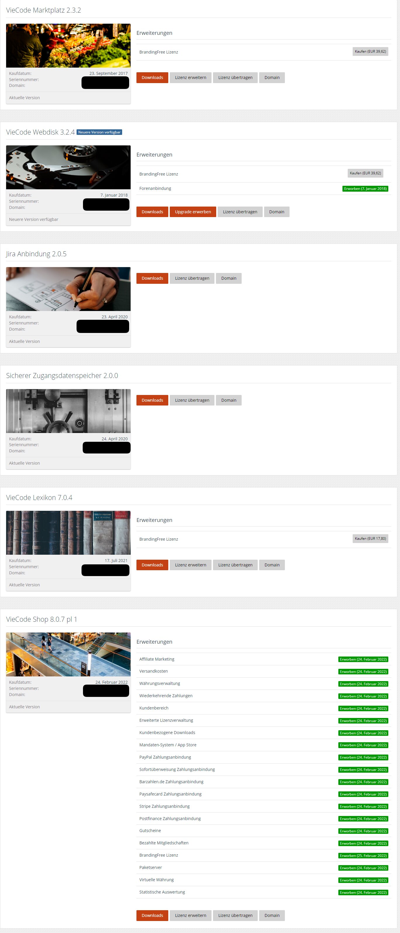 Die Übergabe der Lizenzen erfolgt nach Zahlungseingang via Lizenzübertragung auf Viecode. Etwaige Transfergebühren werden durch mich getragen.