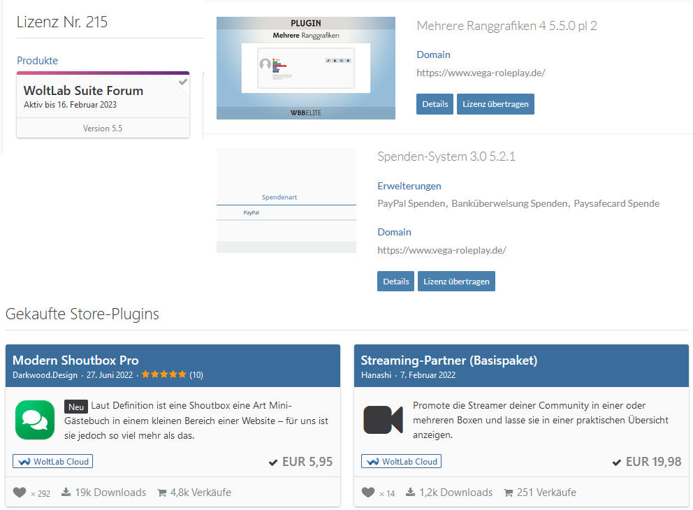 Ich suche eine Woltlab Lizenz mit Forum. Es ist egal ob der Support schon abgelaufen ist.