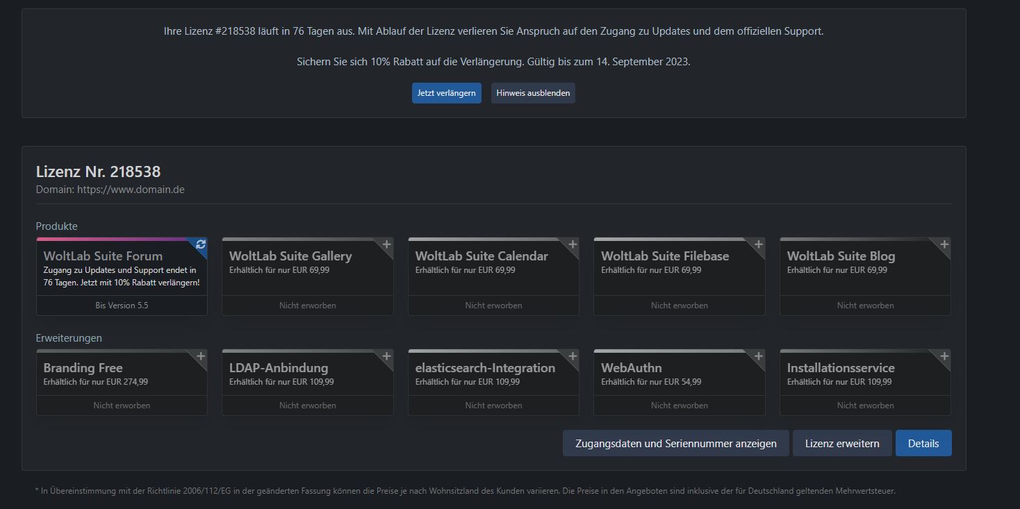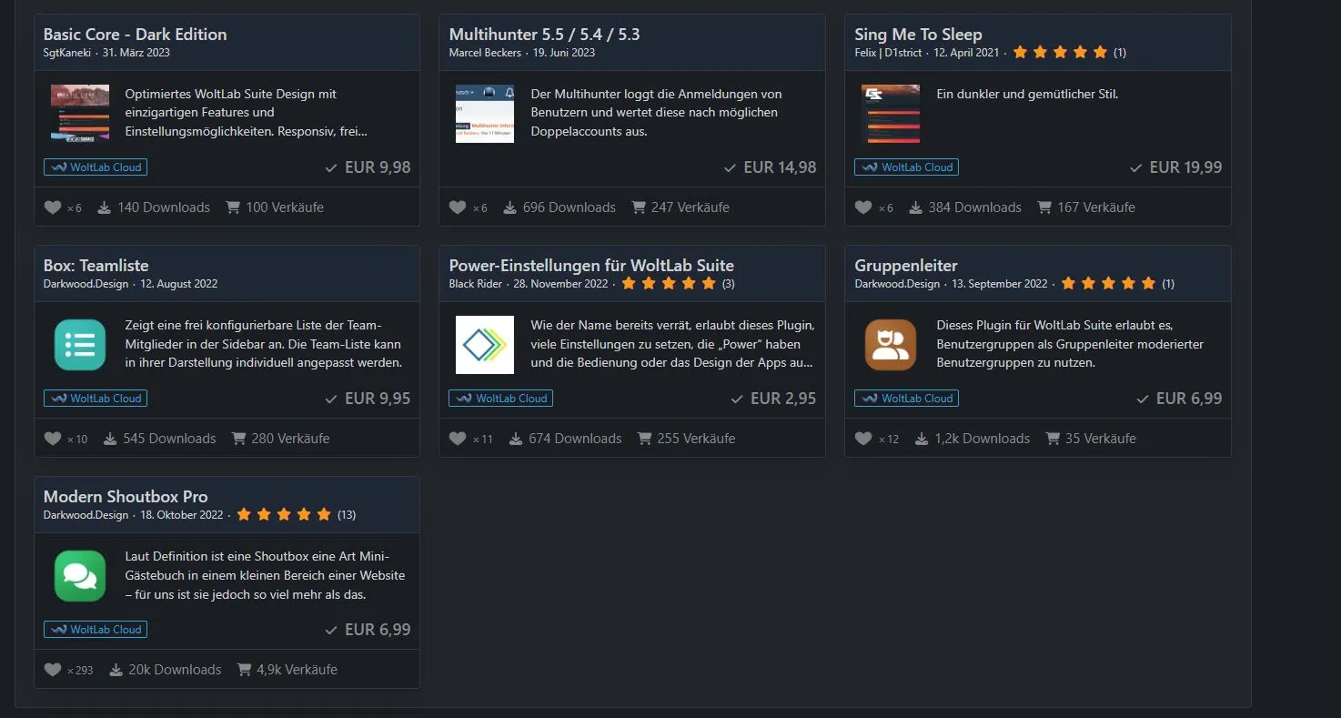 Hallo,biete hier eine Woltlab 5.xx Lizenz mit ein paar Plugins an (siehe Screenshots).Account wird übertragen, Bezahlung per PayPal oder Überweisung.Bilder: 80 VB