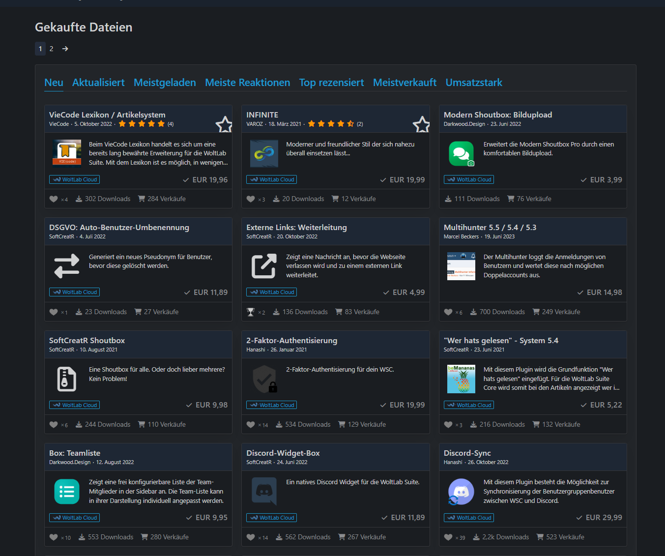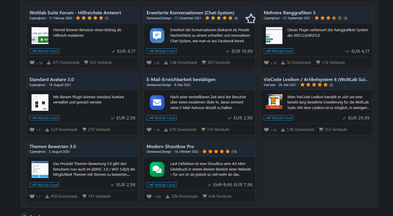 Biete diverse Plugins von WoltLab an (Account Übergabe)Alle Plugins sind für alle Versionen der 5.X verfügbar! Außer das Lexikon bis 5.3Gesamt NEU Wert ca. 285€ 60€ VHB