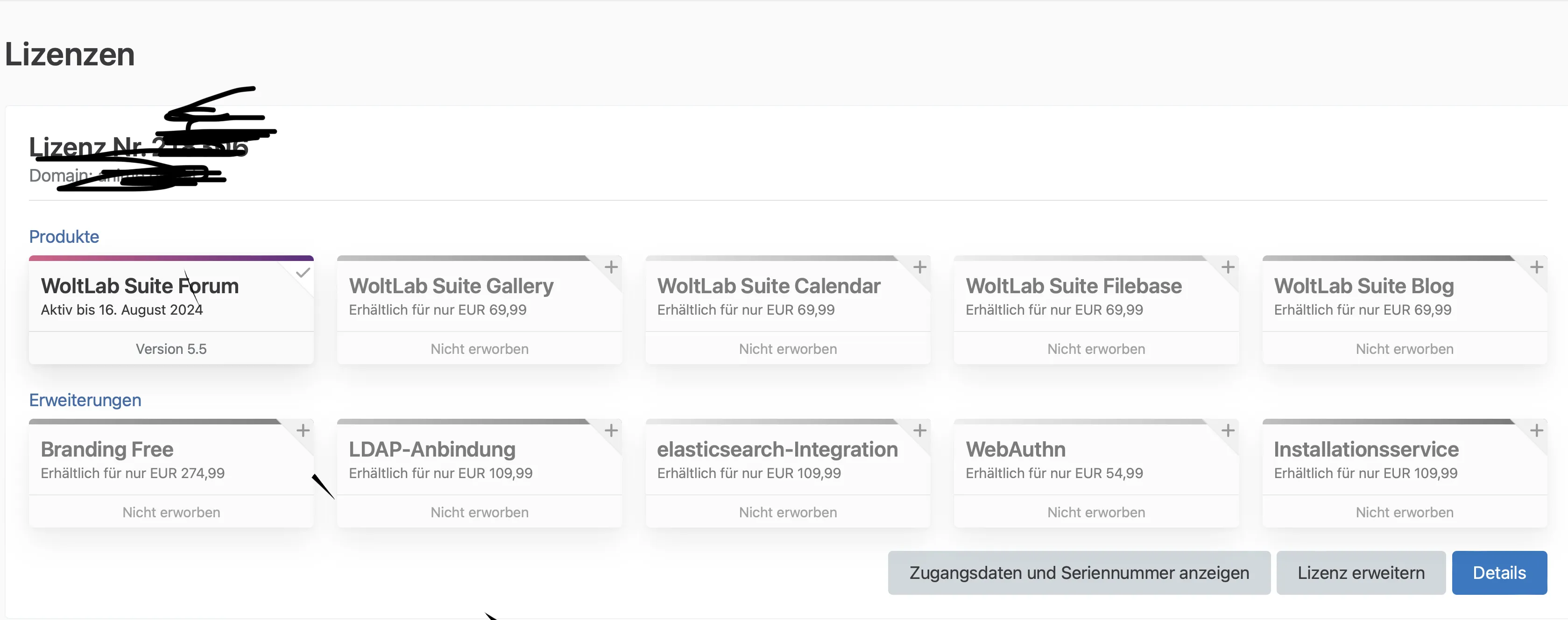 Guten Tag,ich biete einen Account mit der Forenlizenz mit einen Updatezugang bis zum 16. August 2024 sowie diversen Plugins an.Festpreis, bezahlbar per Paypal. 99€