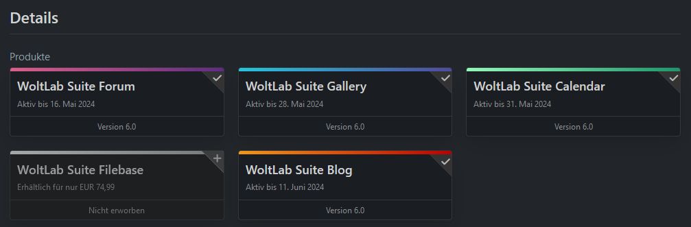 Nach dem Kauf benötige ich für den Lizenz Transfer den Benutzernamen bei WoltLab und die komplette Anschrift. Ohne diese Daten ist ein Lizenztransfer leider nicht möglich.