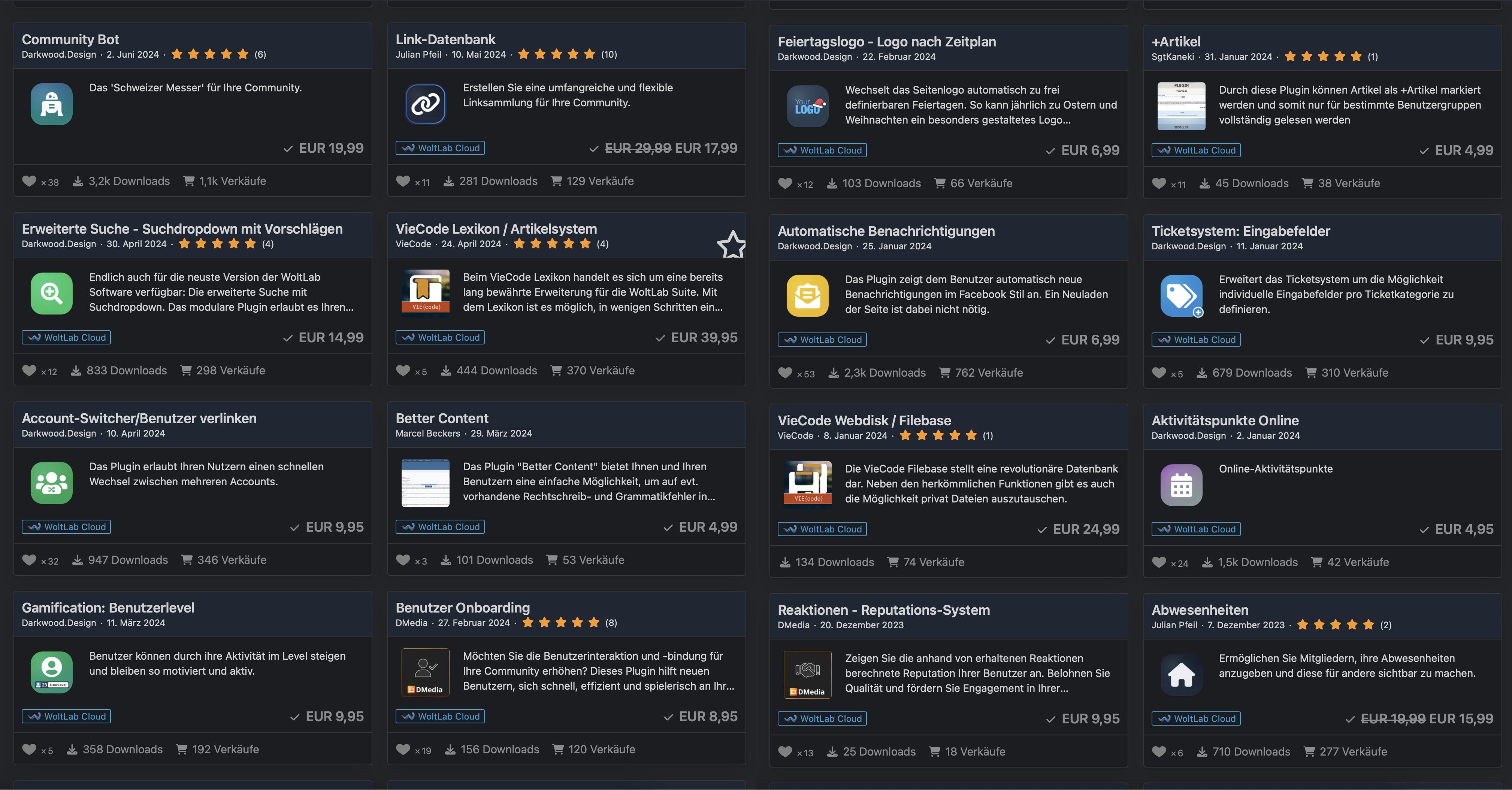 Hi zusammen, aufgrund persönlicher und zeitlichen Gründen muss ich mein Projekt aufgeben. Daher biete ich meine WoltLab Suite 6.0 Lizenz für das Forum zusammen mit allen Plugins, die ich vom WoltLab Store und externen Stores erworben habe, zum Verkauf an. Die Übersicht aller Plugins können im Anhang entnommen werden.