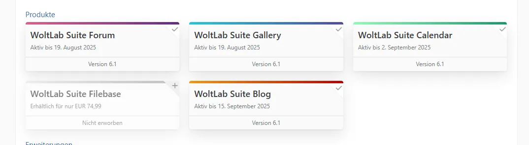ich biete hier eine Woltlab Forum Lizenz 6.1 mit Blog, Kalender und Galerie zum Festpreis von 180 € inkl. Lizenzübertragung an.