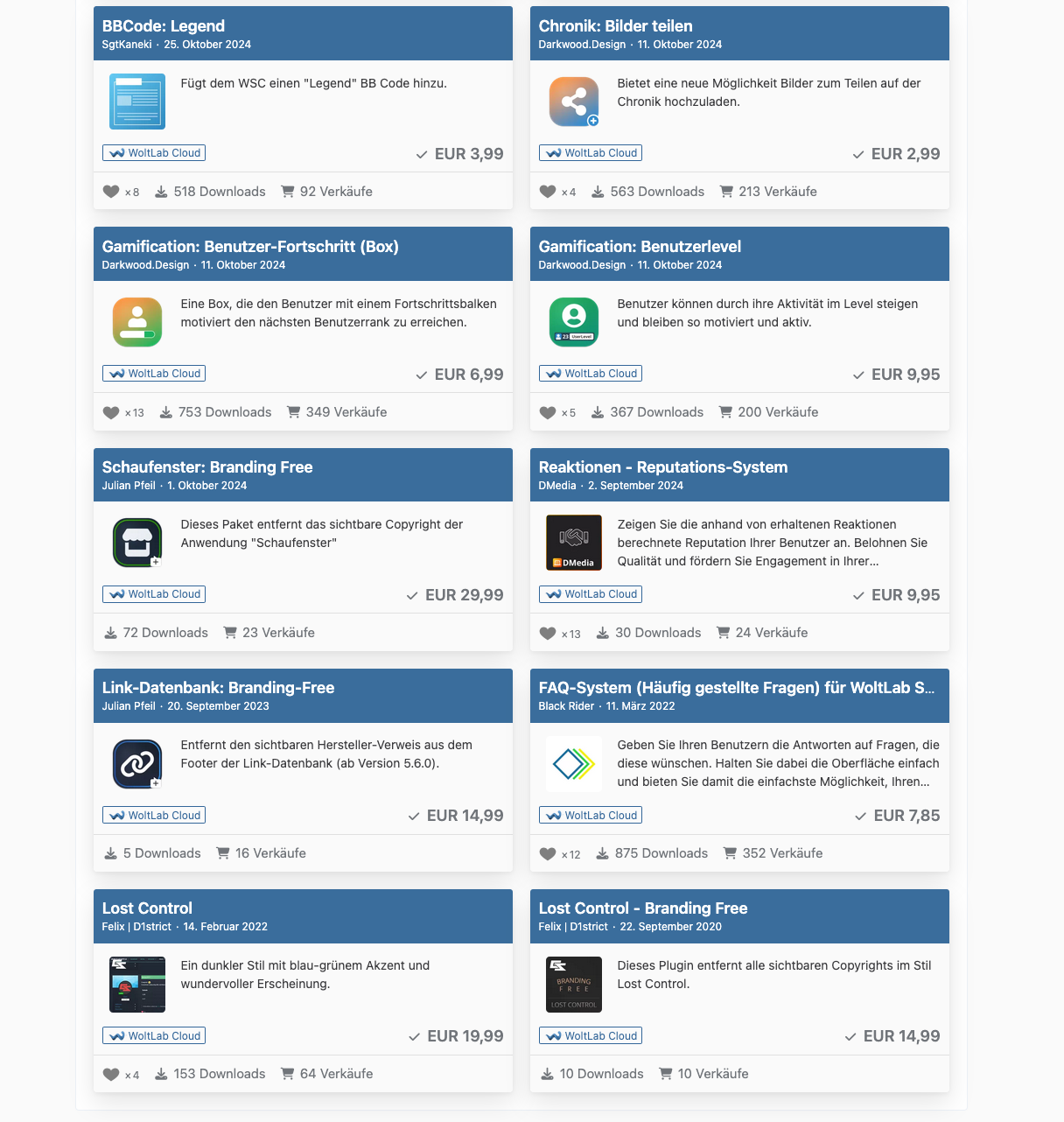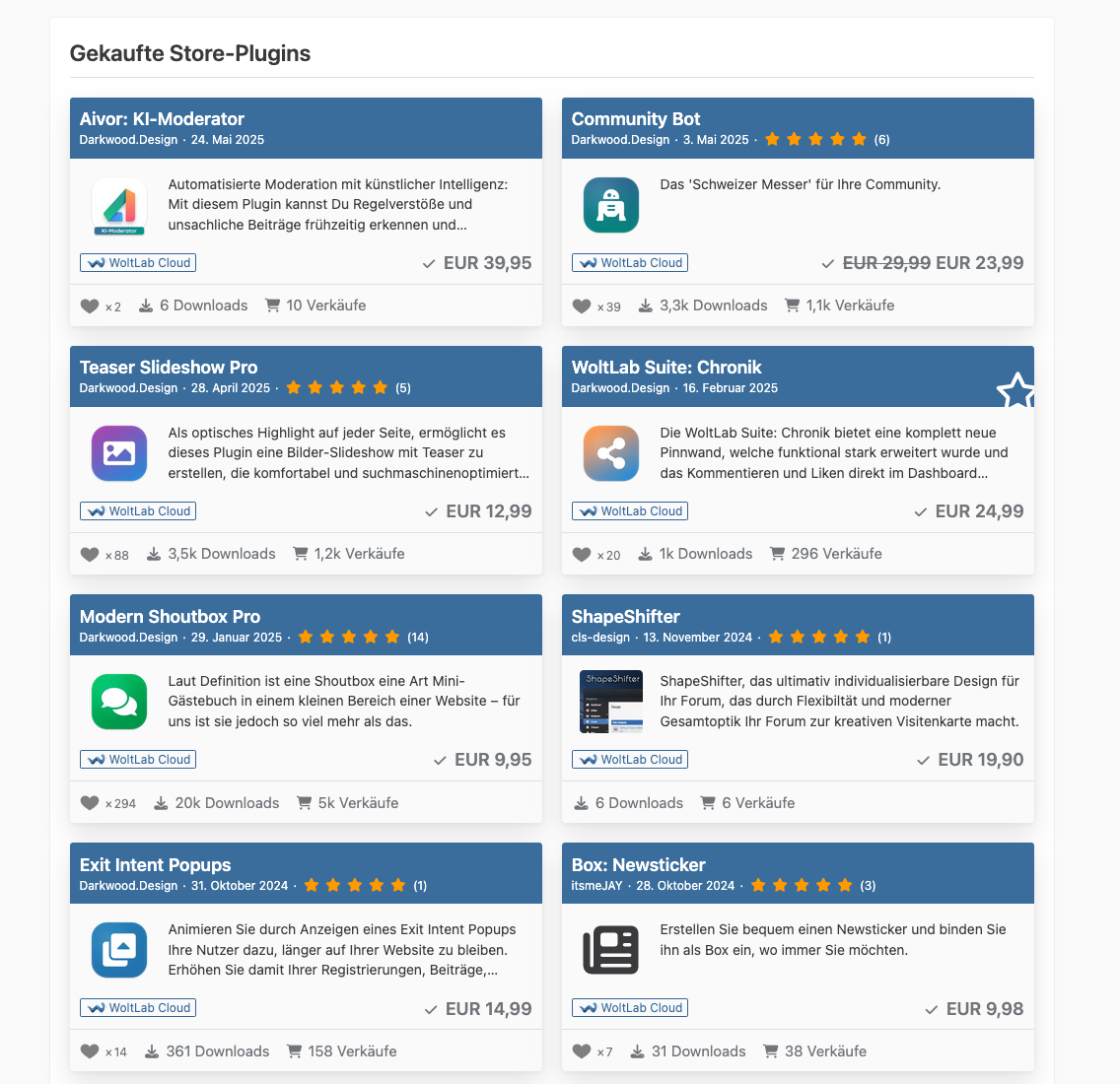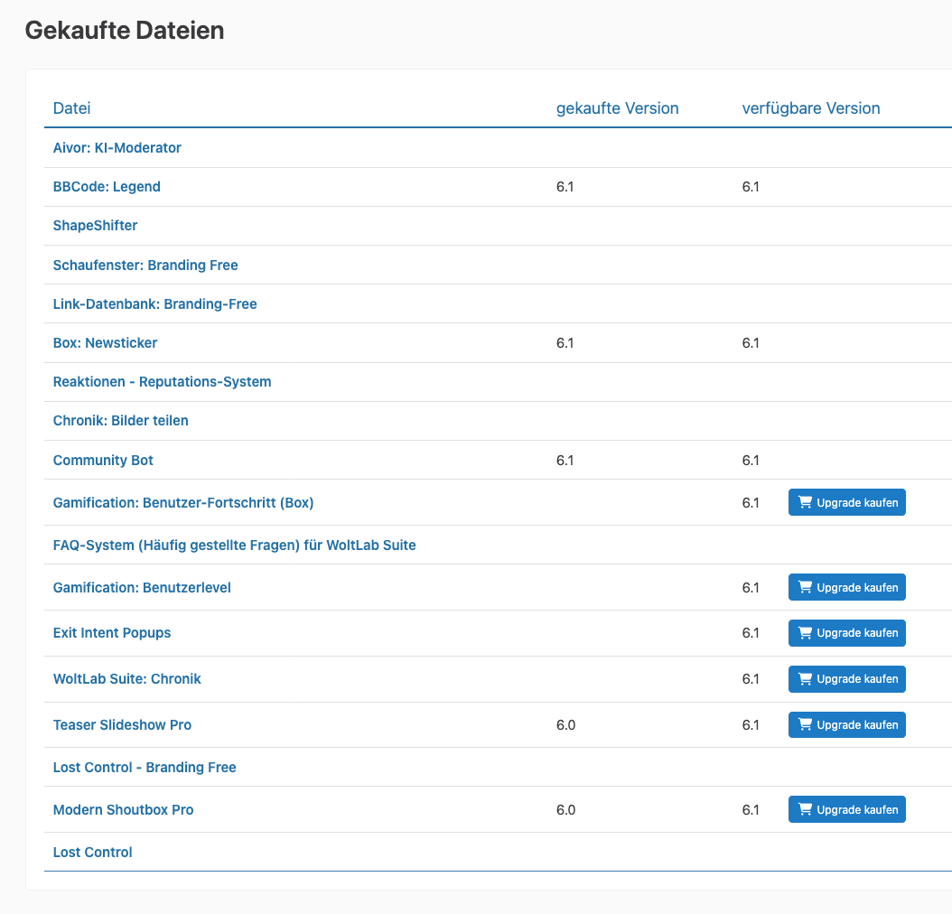 Zum Verkauf steht ein umfangreicher WoltLab-Account, der folgende Komponenten enthält: