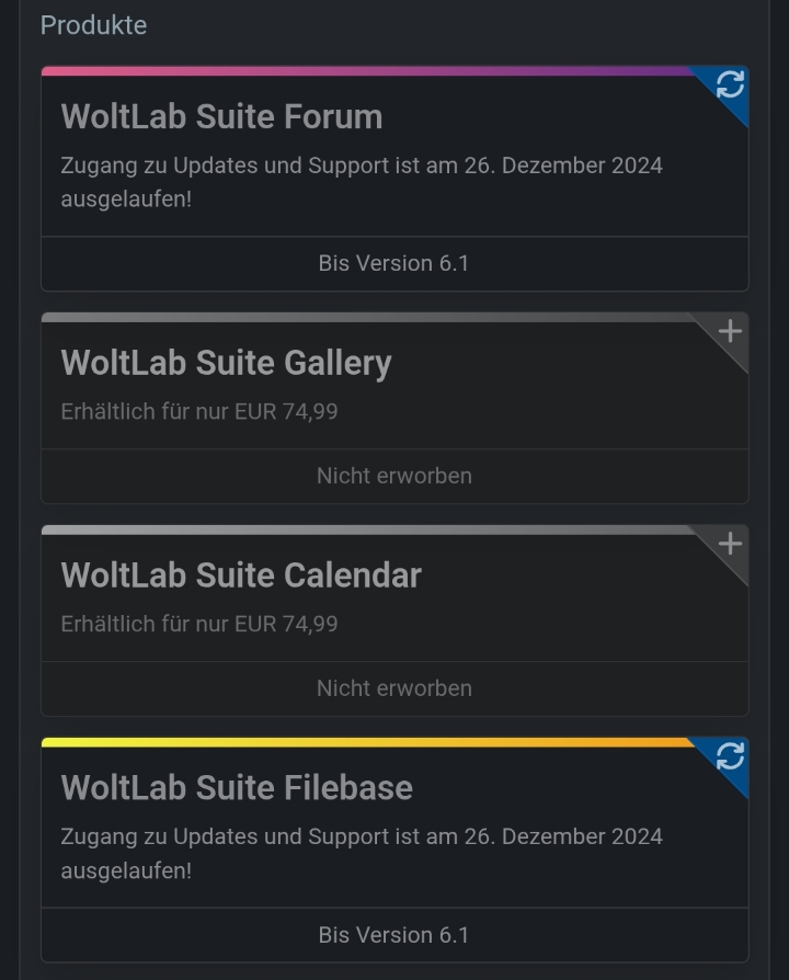 Ich verkaufe meine Lizenz für das WoltLab Forum 6.1 und Filebase 6.1