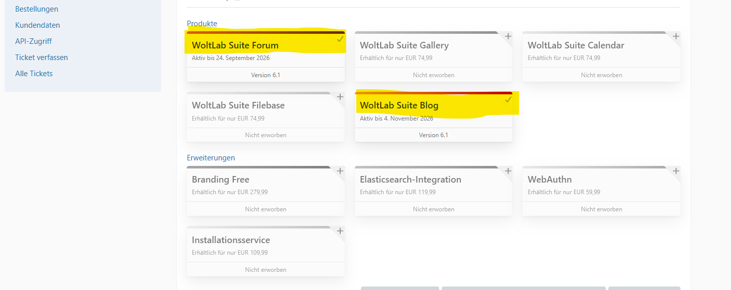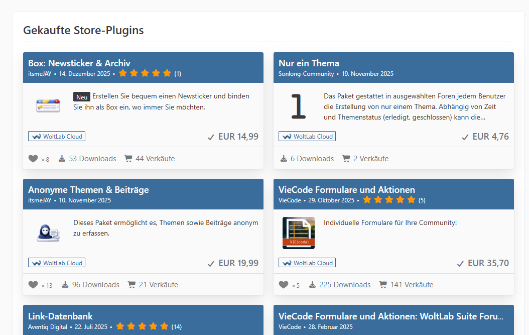 WoltLab Account kann nach Bezahlung mit Linzenz und Plugins übernommen werden.