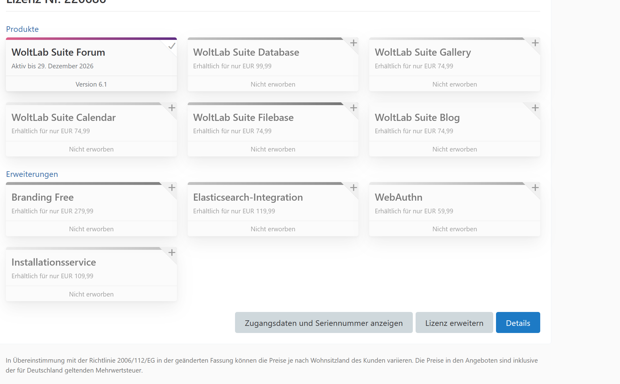 ich verkaufe eine am 29.12.25 Erworbene WoltLab Suite 6.1 Forum Lizenz.