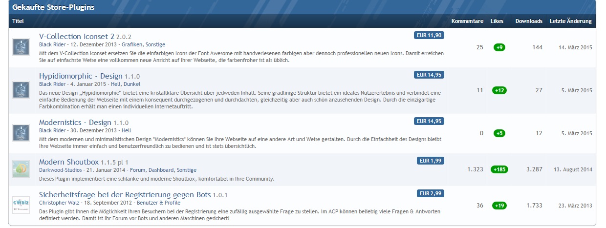 ich biete hiermit meinen kompletten Account mit diversen Plugins (siehe Anhänge) an da dieser nicht mehr benötigt wird.