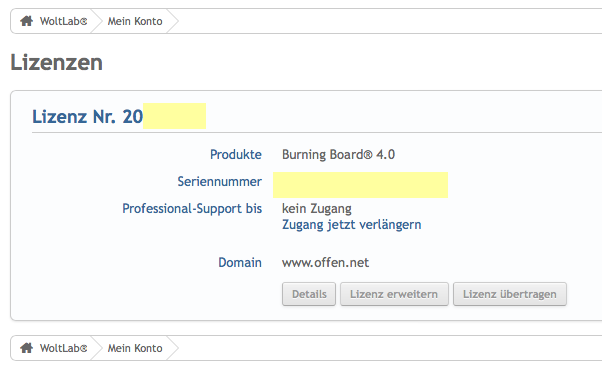 • Zum Verkauf steht eine Burning Board 4.0 Lizenz in einem separatem Account mit ein paar Plugins: