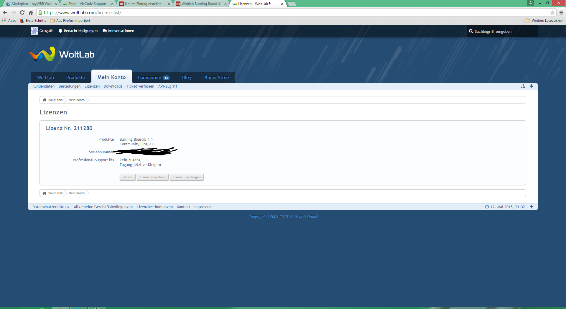 Das ist die Regelung hier, ich schreibe dir aber gleich eine Nachricht, weil dein Eintrag aus Sicherheitsgründen editiert werden muss (zu deinem Schutz). Man sieht die Seriennummer und Lizenznummer zu deinem WBB und das könnte nicht legal agierende Menschen auf Ideen bringen.