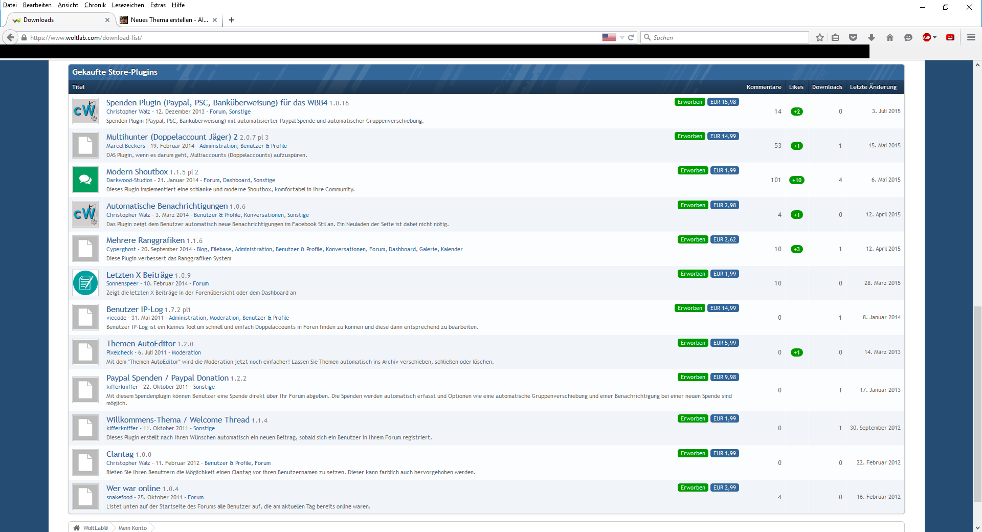 Biete WBB 4.1.X + Community Calendar 2.0 + diverse Plugins (gesamter Account)
