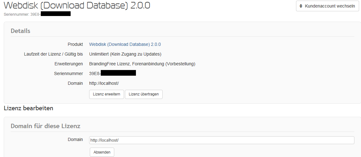 Optional kannst du bei Peter einen Update-Zugang zum Preis von 11,85 Euro inkl. deutscher MwSt. von 19% kaufen und hast dann für 14,75 Euro (2,90 Euro Kaufpreis inkl. PayPal Gebühr + 11,85 Euro Update) eine Lizenz für die Webdisk 2 für das WBB 4.