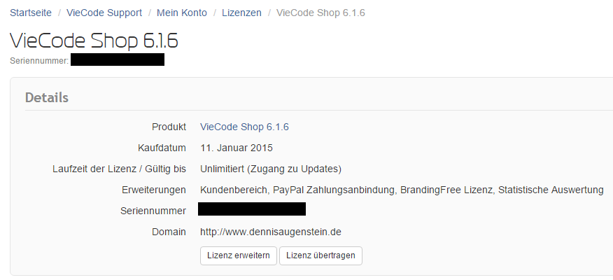 • Ich habe eine Lizenz des VieCode Shops inklusive der folgenden vier Erweiterungen abzugeben: