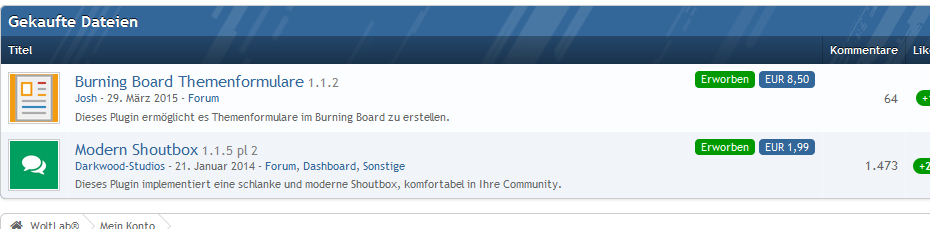 • Verkaufe eine Burning Board 4.1.7 Lizenz mit 2 erworbenen Plugins. Grund ist dass ich mein Foren-Projekt aus privaten Gründen nicht weiterführen kann und möchte.