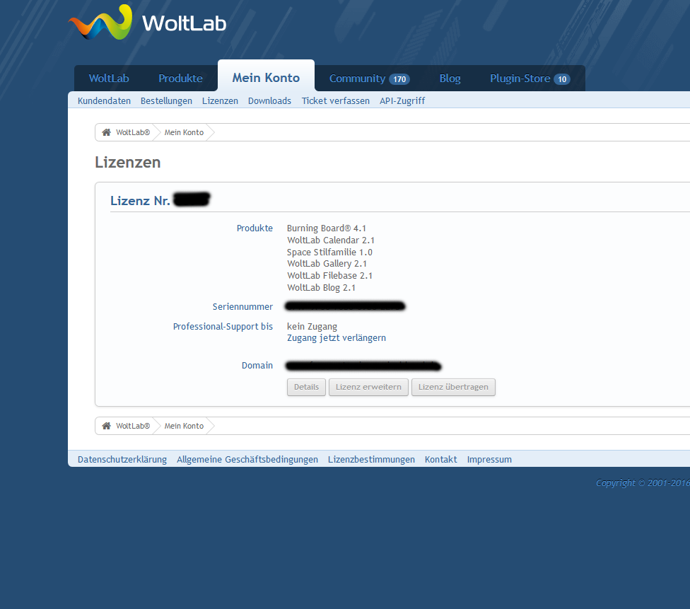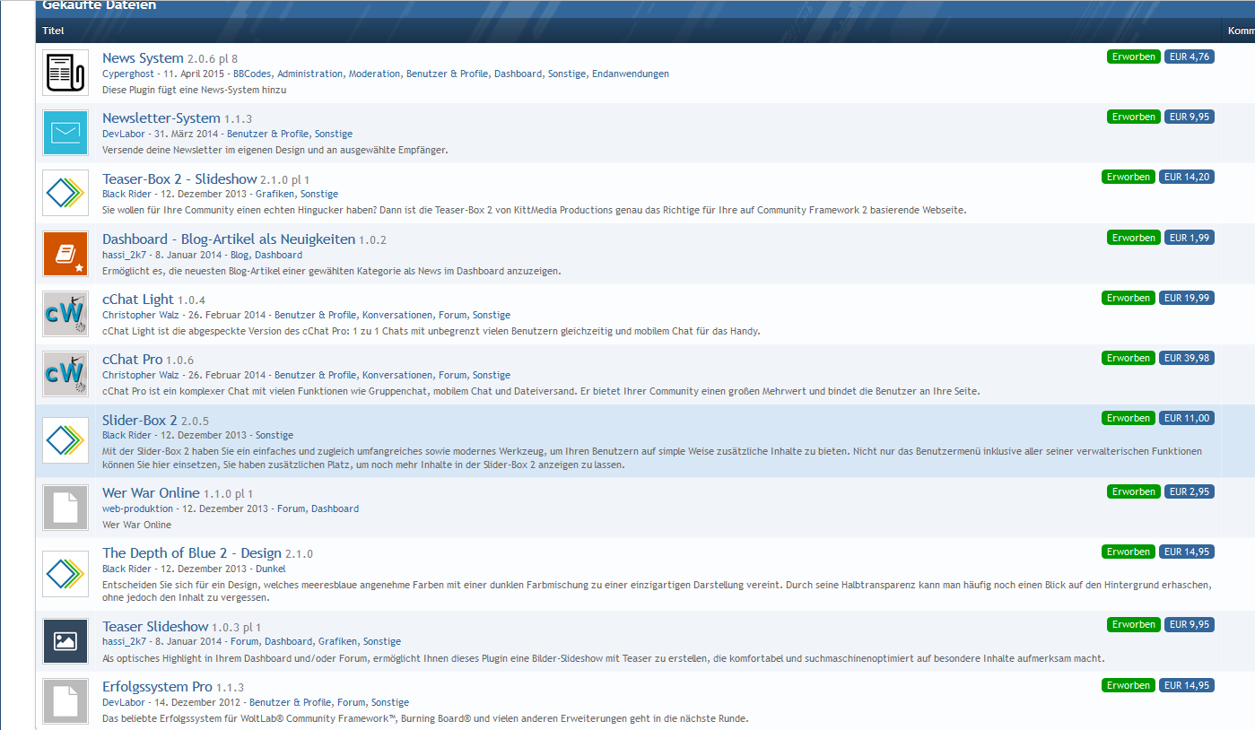 WBB 4.1.10, Woltlab-Filebase 2.1.2, Woltlab-Calendar 2.1.2, Woltlab-Galerie 2.1.2, Woltlab Blog 2.1.4