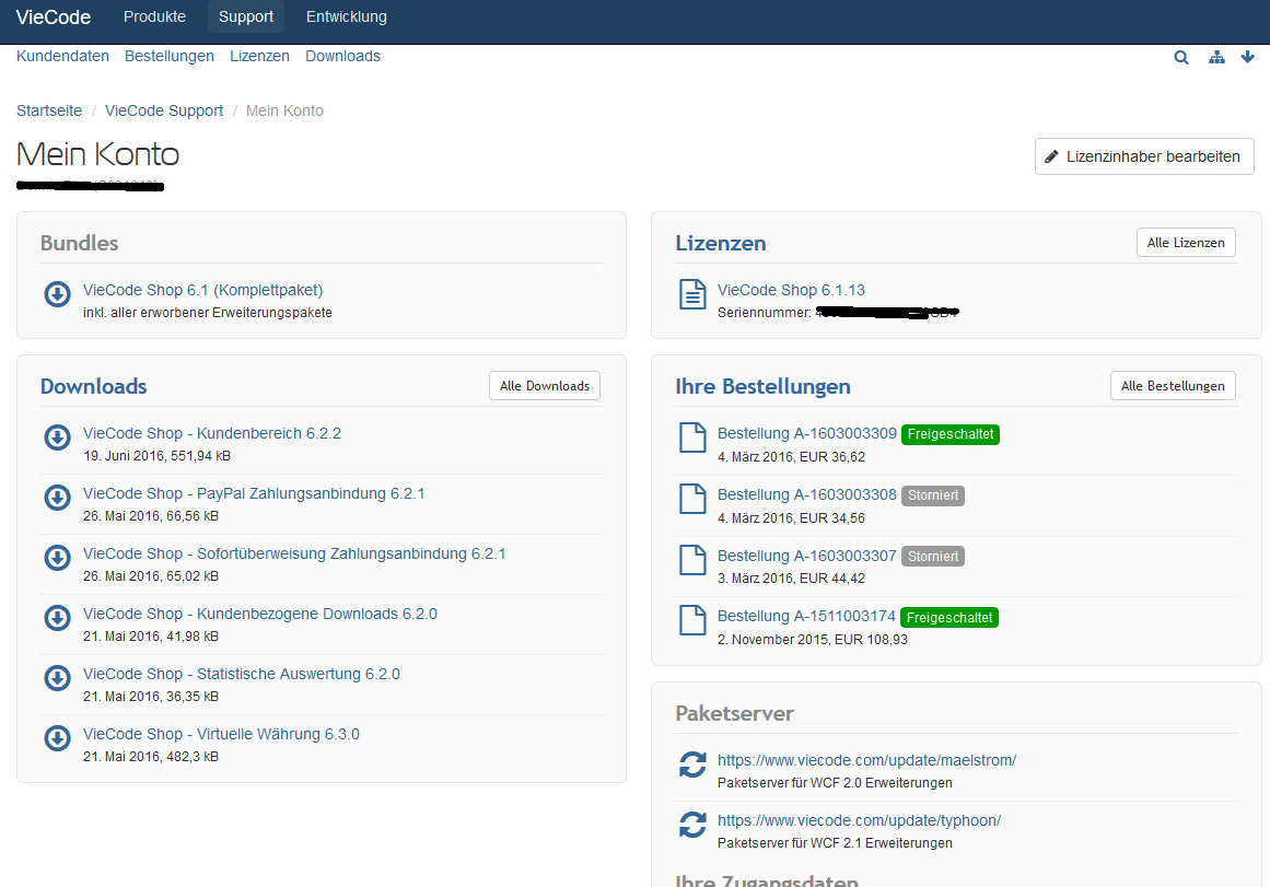 - Konfiguration/Erweiterungen: PayPal Zahlungsanbindung, Sofortüberweisung Zahlungsanbindung, Virtuelle Währung (Neu: 36,62 €)
