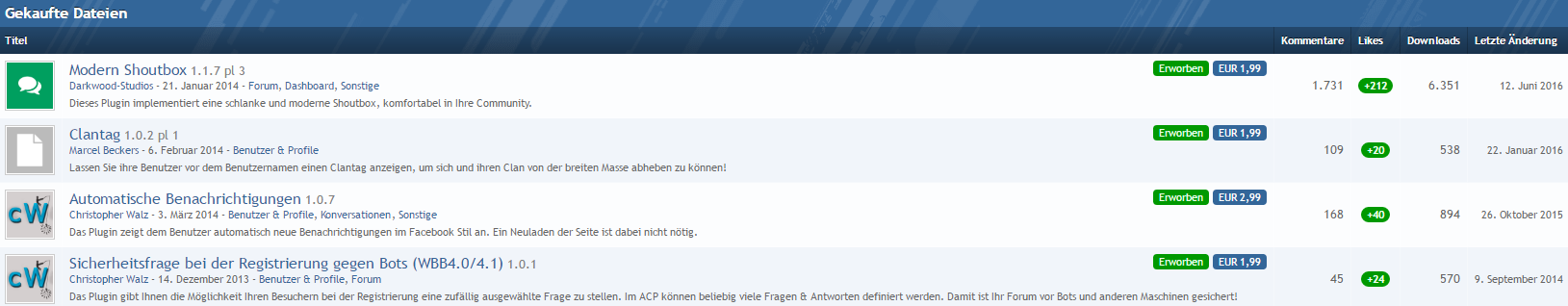Die Lizenz von WBB4.1 mit den 4 Plugins sind auf woltlab.com/de/wbb/