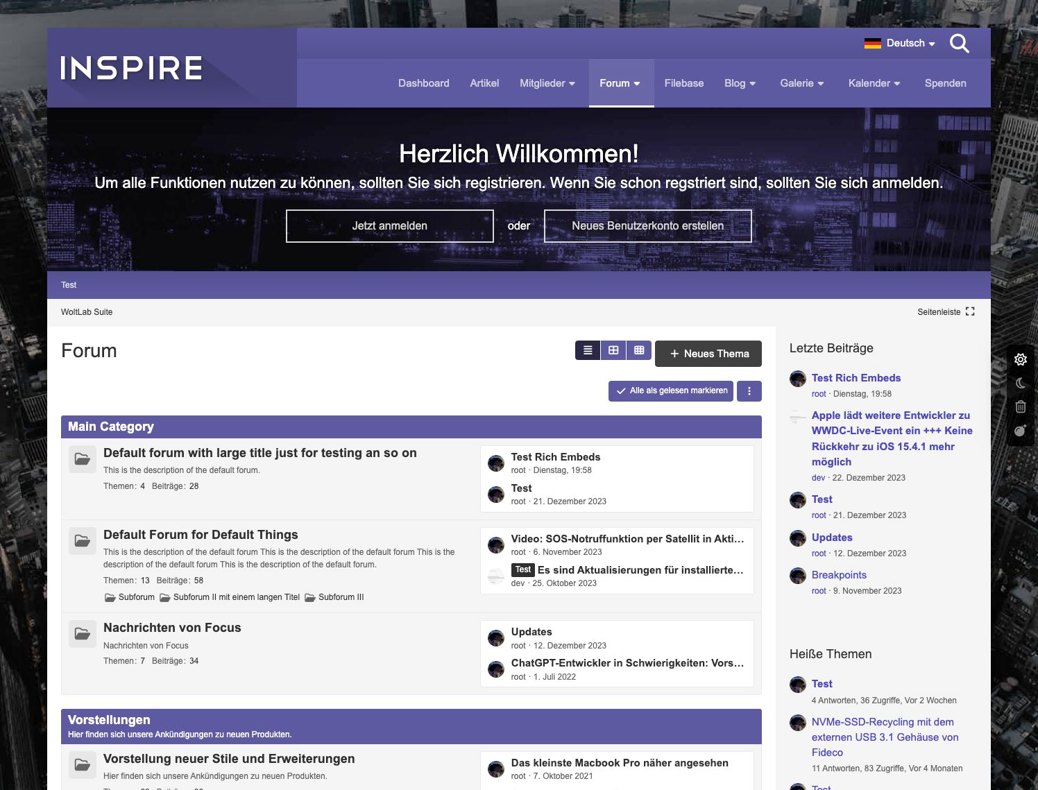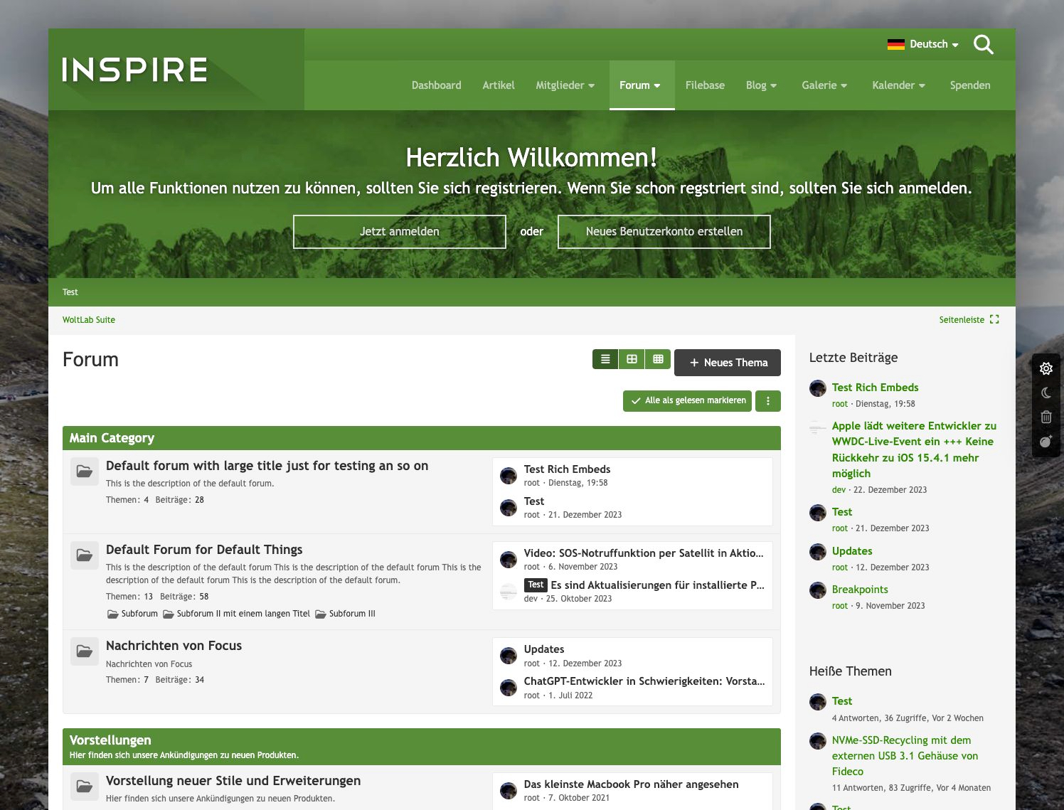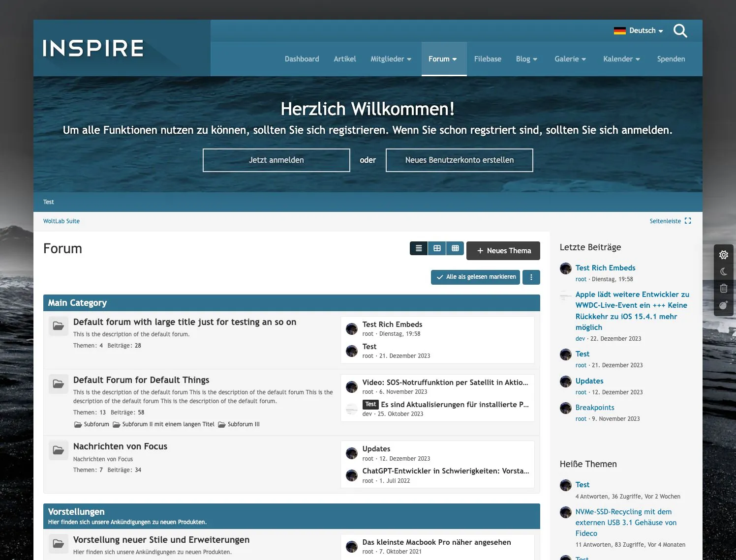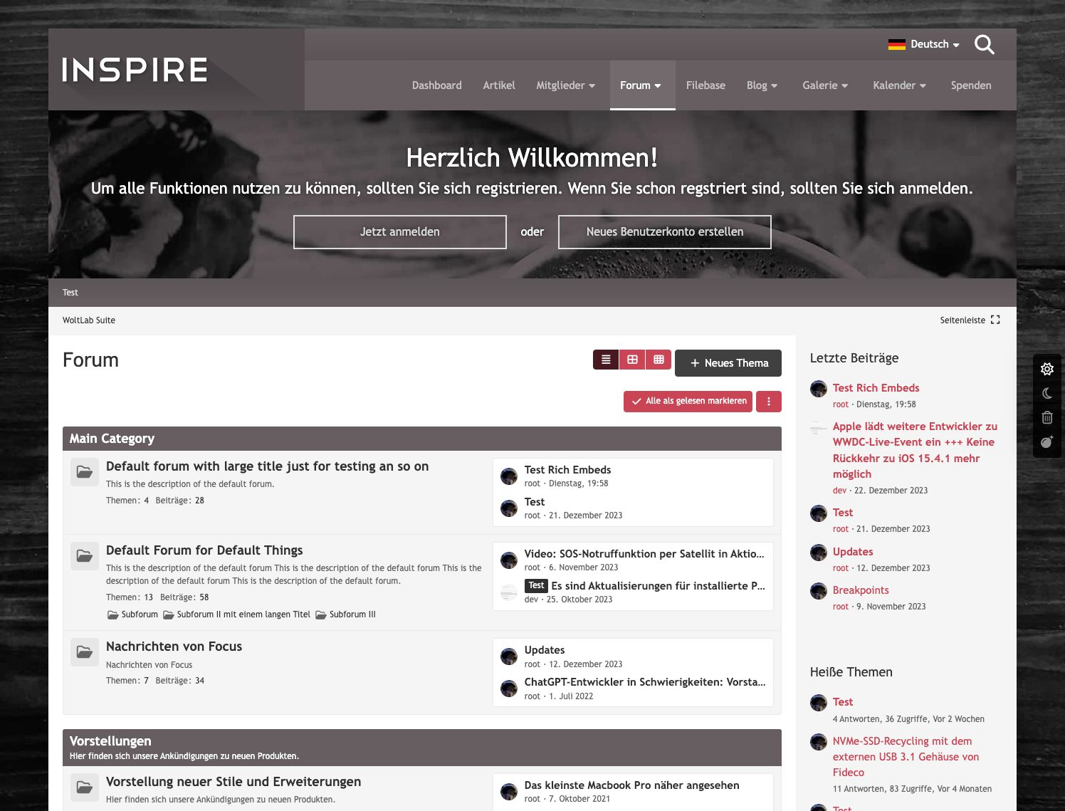 Inspire ist ein Stil auschließlich für WoltLab Suite erstellt. Gegenüber anderen Stilen besitzt Inspire einige Besonderheiten. So wird der Header beim Scrollen in einer verkleinerten Darstellung am Bildschirmrand fixiert.